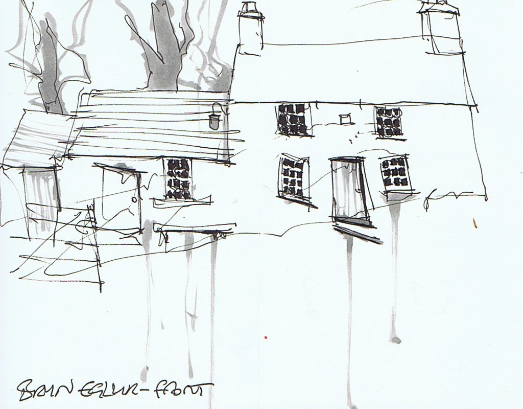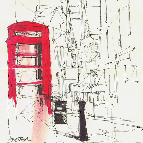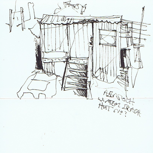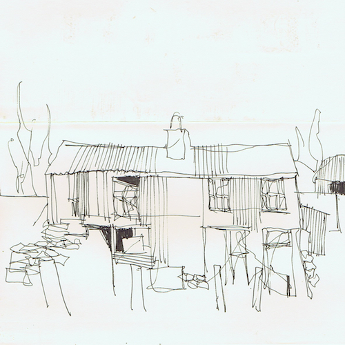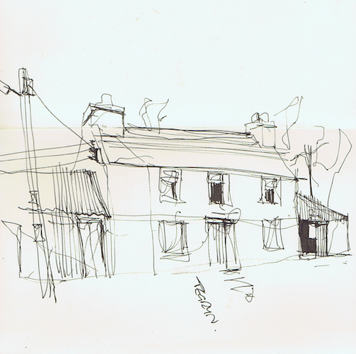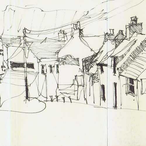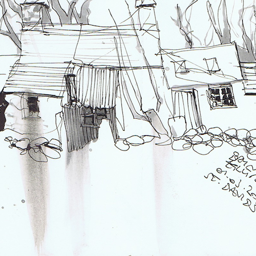 I draw in a moleskine “Japanese Album” with fineliner pens and a Pentel brush pen